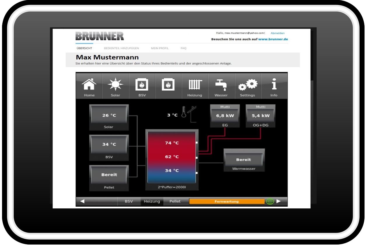 … zum Online-Zugriff auf Ihr BRUNNER-Heizsystem mit Touchdisplay.